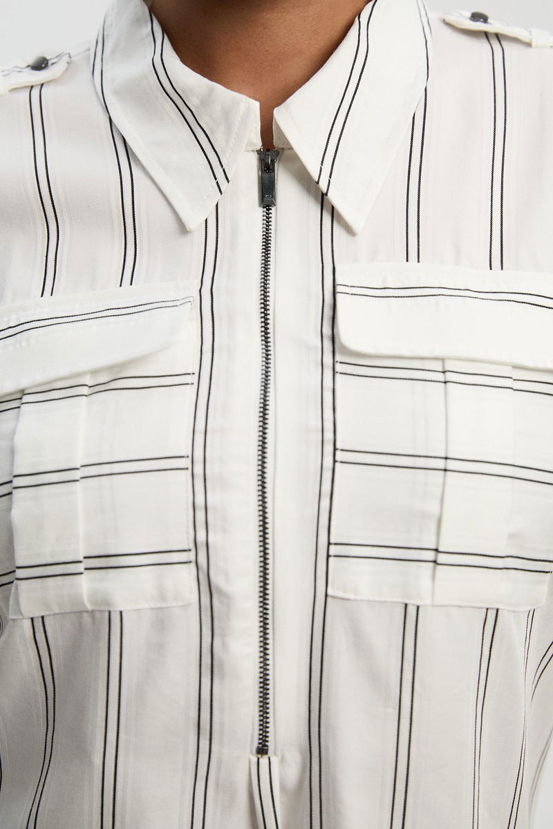 Plus Size Bold Stripe Cotton Woven Utility Shirt