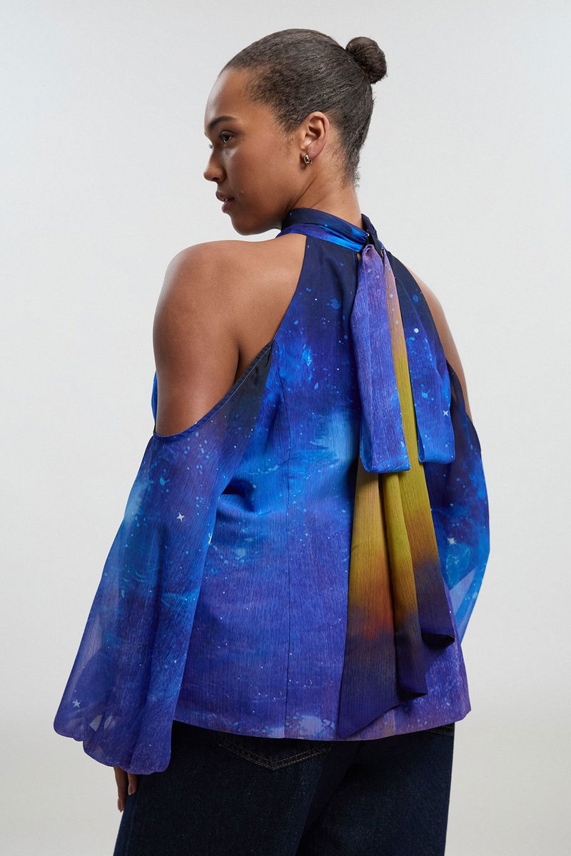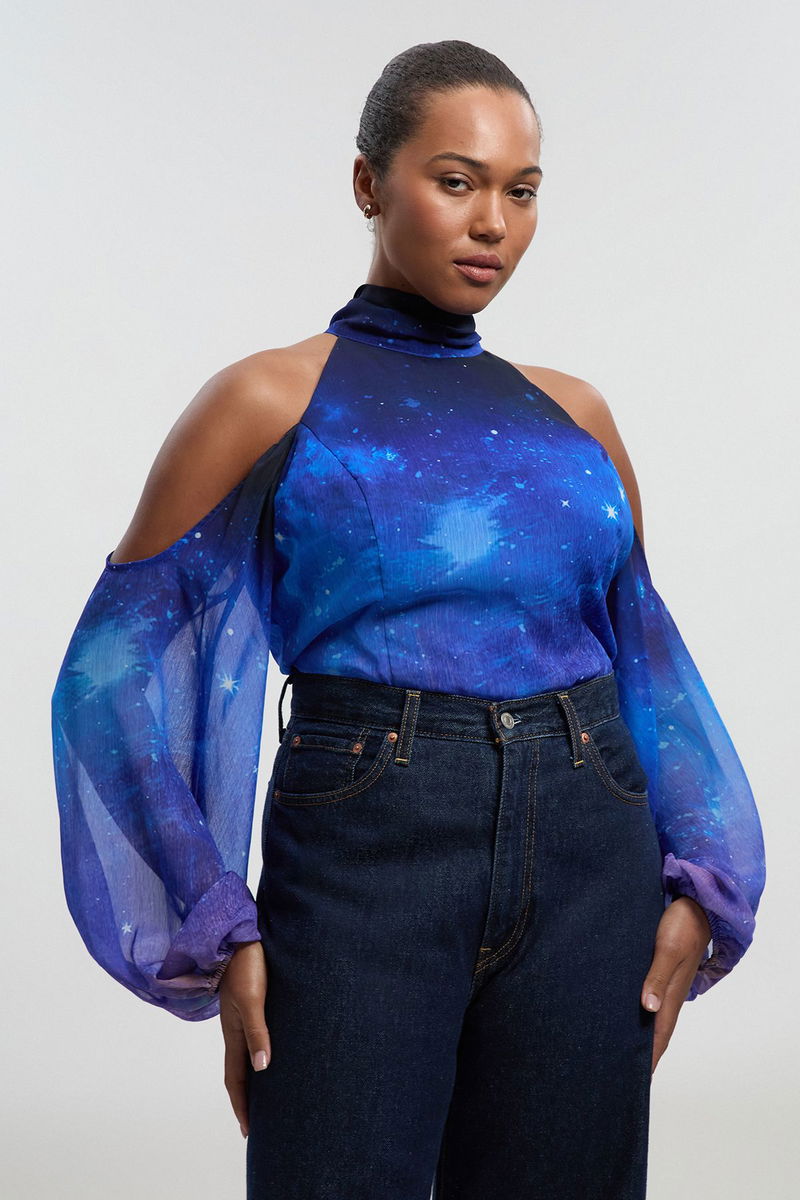 Plus Size Cosmic Cold Shoulder Woven Blouse