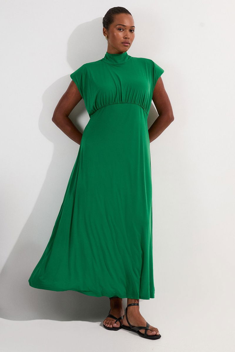 Plus Size Drapey Crepe Jersey Corset Detail Maxi Dress