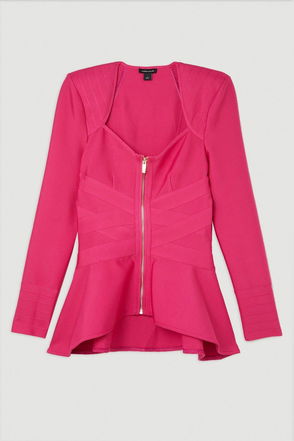 Plus Size Figure Form Bandage Knit Side Zip Longline Jacket.