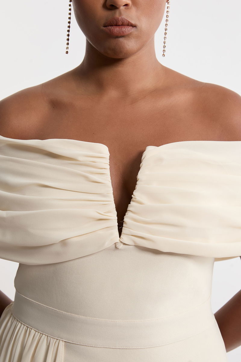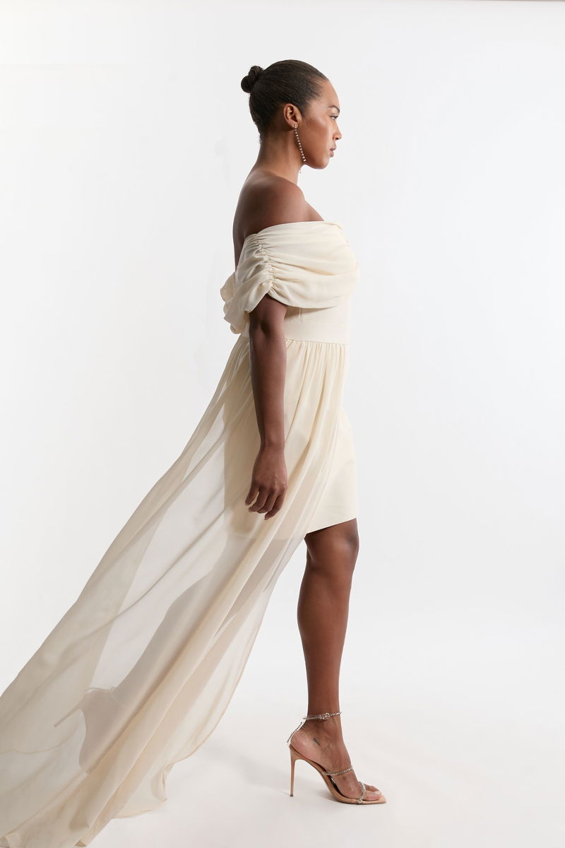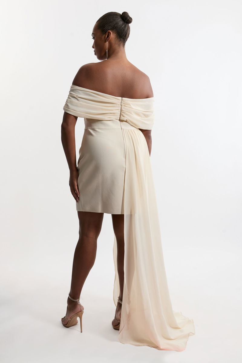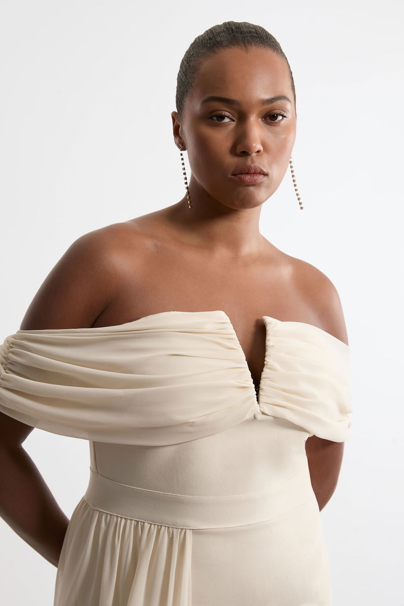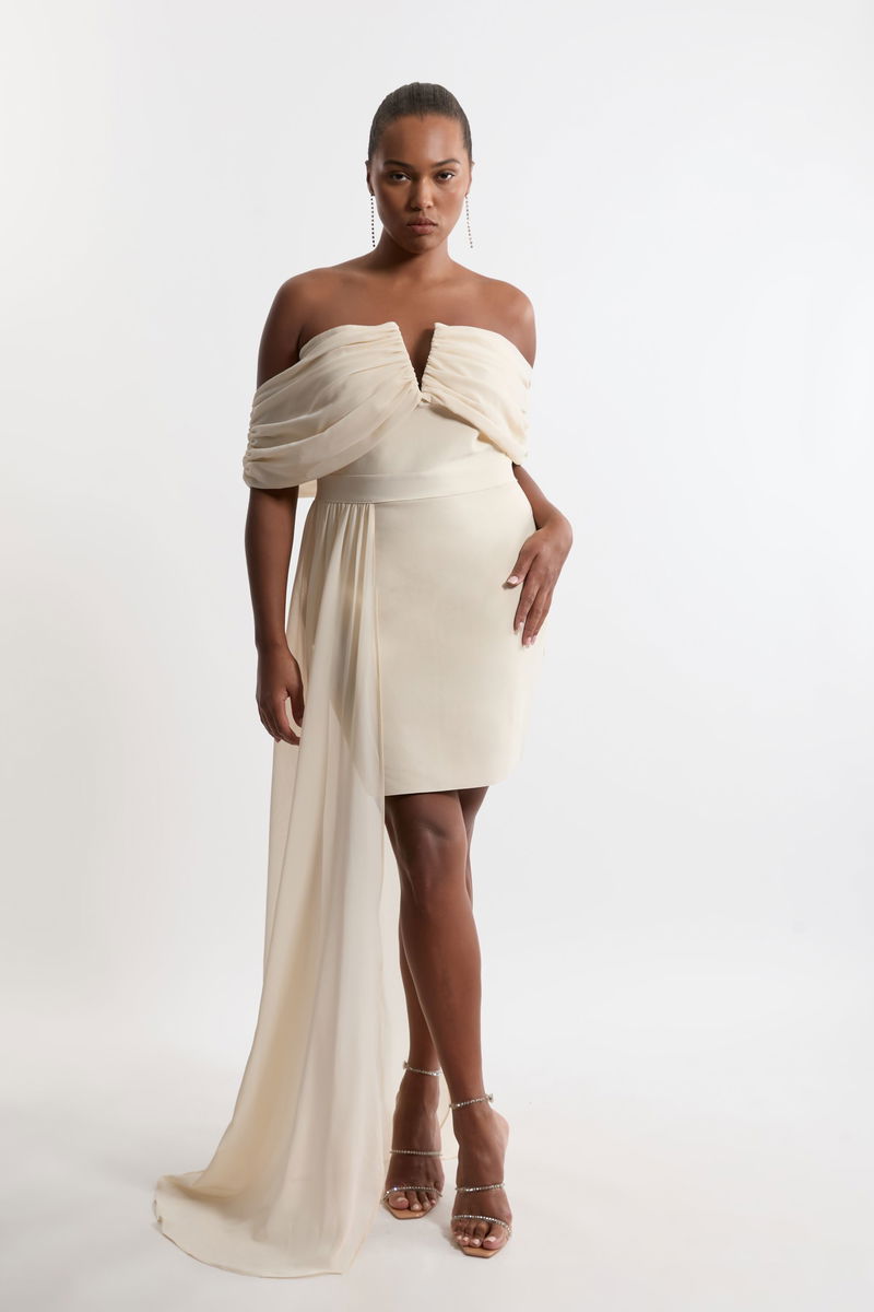 Plus Size Figure Form Bandage Knit Woven Bardot And Skirt Detail Dress