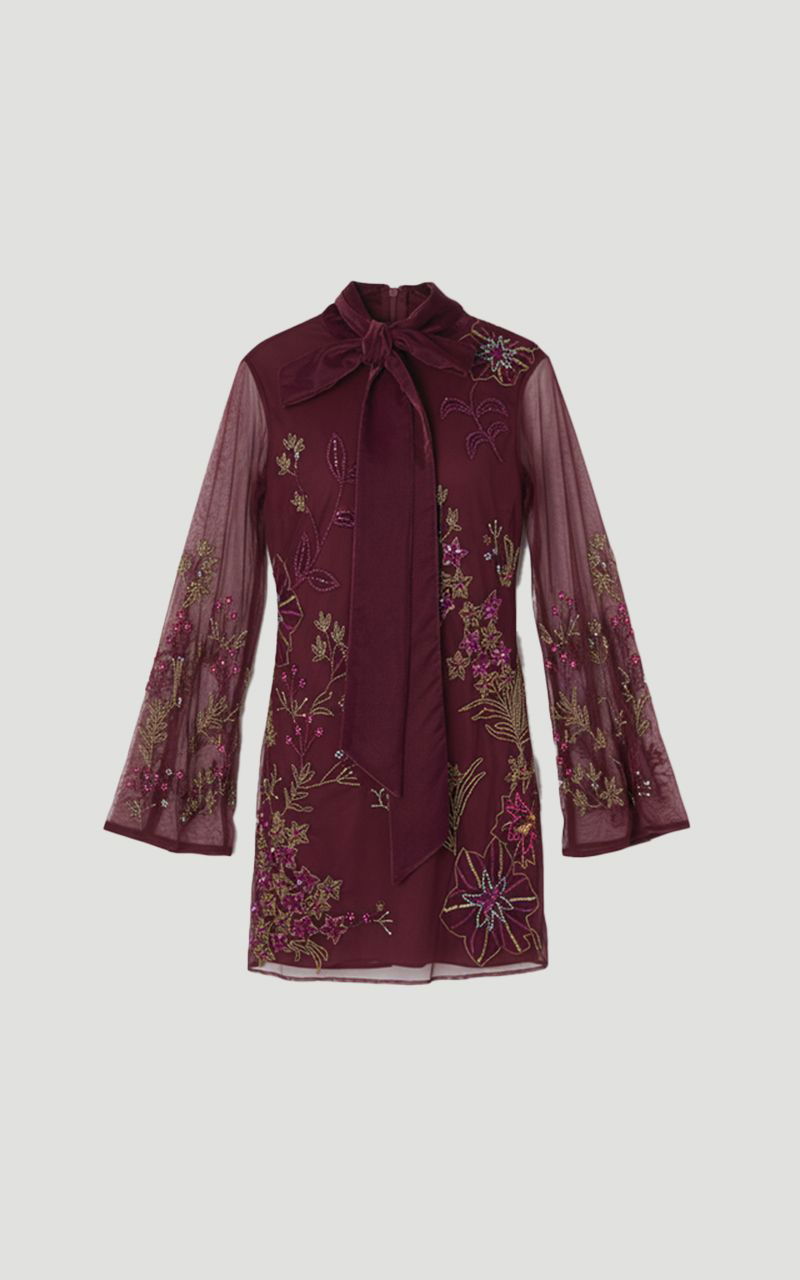 Plus Size Floral Applique Embellished Organdie Woven Mini Dress