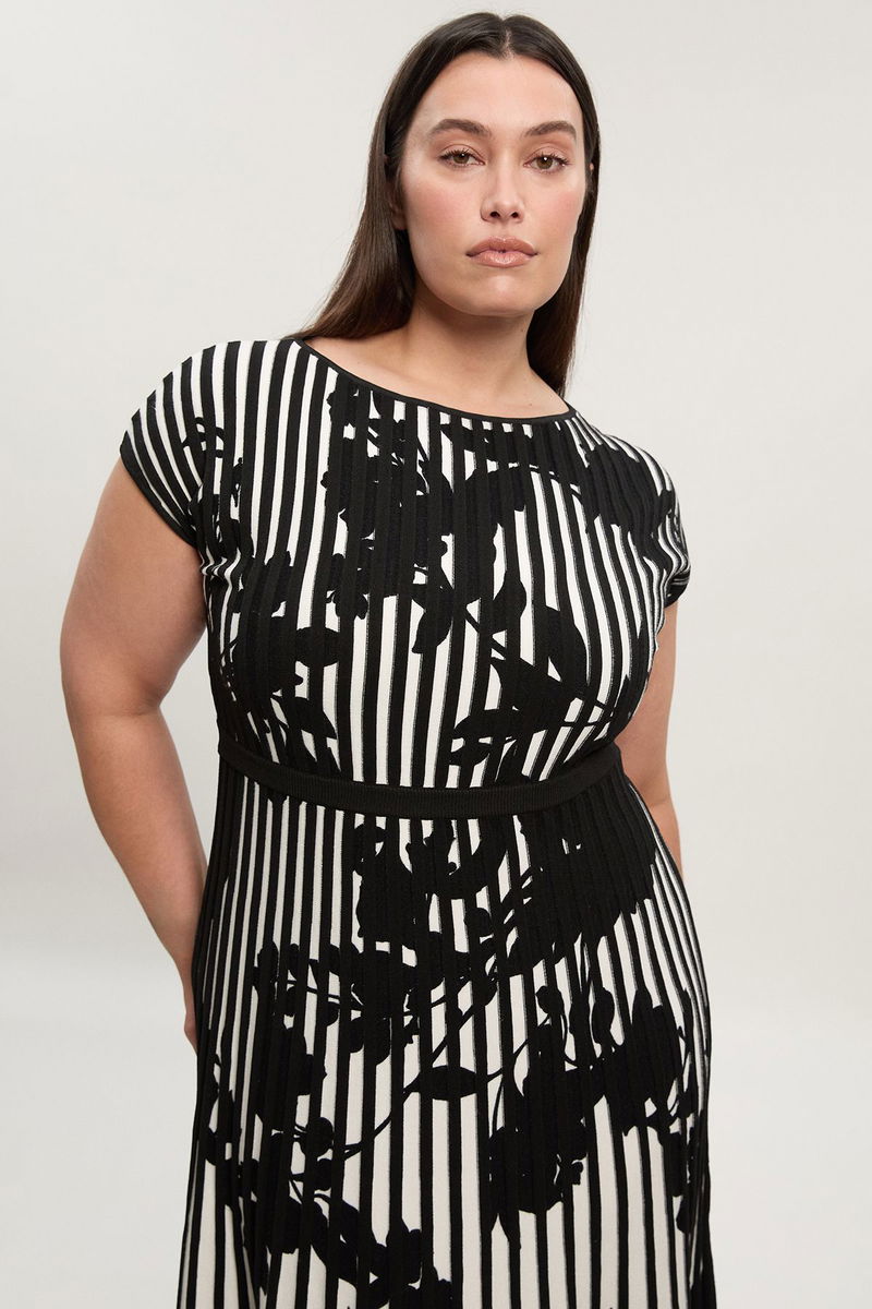 Plus Size Floral Jacquard Knit Full Skirted Midi Dress