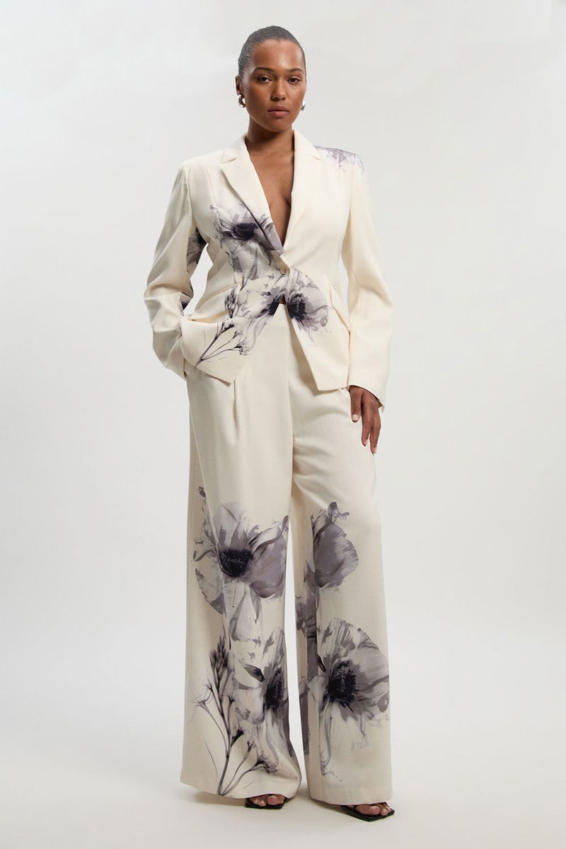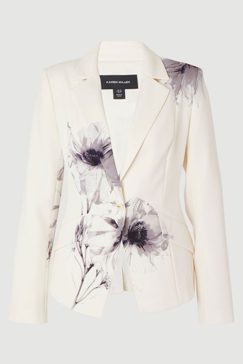 Plus Size Floral Placement Print Tailored Crepe Single Breasted Blazer Jacket