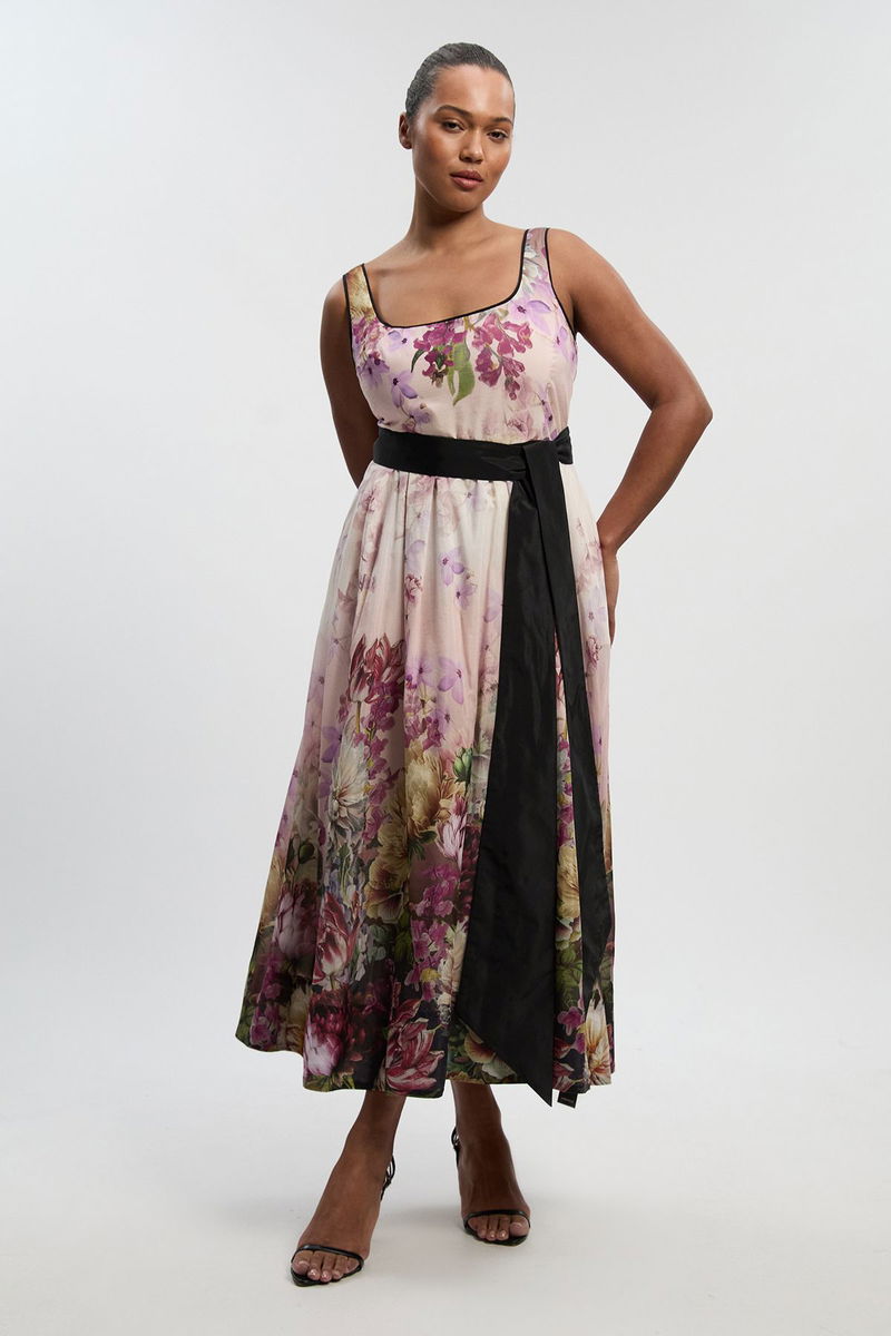 Plus Size Floral Print Silk Cotton Strappy Woven Maxi Dress