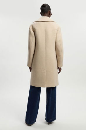 Crafted from Italian wool and cashmere for timeless elegance, this midi coat has a sculpting silhouette that is formed by a stand collar with contemporary with notched details, a belted waist, and flap pockets. Pair this piece with layers of cosy cashmere and wool knitwear for season-long styling.