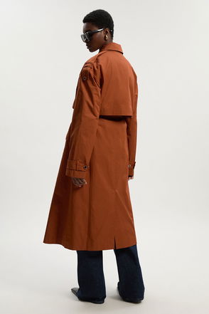 This trench coat combines sleek sophistication with timeless allure. Crafted with sumptuous leather and an oversized fit, this outerwear piece drapes over knitwear with ease, making it a cold-weather staple. Shoulder epaulettes, notched lapels and a waist-tie belt enhance this