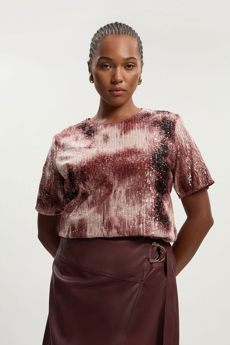 Plus Size Ombre Sequin Woven Strong Shoulder Top