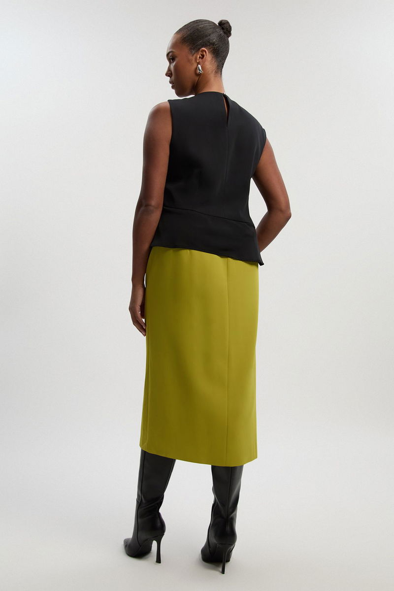 Plus Size Soft Tailored Asymmetric Neck Draped Waist Detail Midi Dress