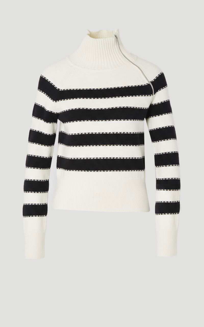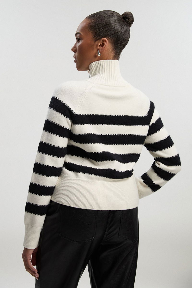Plus Size Stripe Zip Through Funnel Neck Knit Jumper