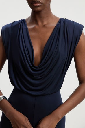 Meet the everlasting style icon – the Forever Jumpsuit. A timeless addition to any well-considered wardrobe, this plus size jumpsuit features a high notched collar, V-neck front, structured shoulders, a fitted silhouette, and a belted waist. Styles well with anything, from heeled ankle boots to strappy sandals for looks that will see you from office days to evenings out.