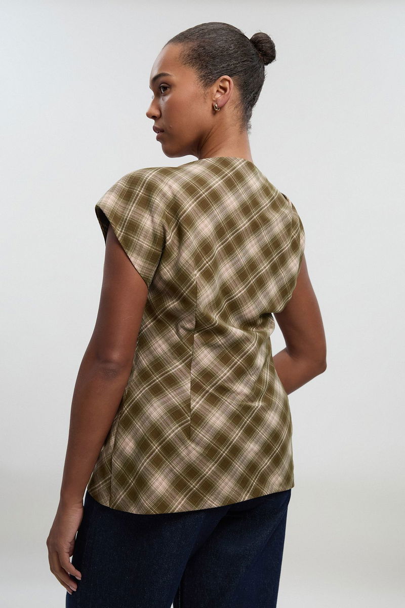Plus Size Tailored Check Trim Detail Sleeveless Top