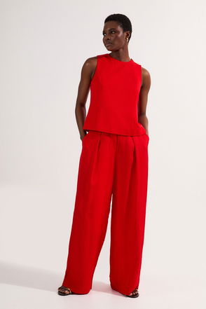 Add a little formality in this plus size linen top. The linen fabric is breathable and comfortable, and the relaxed fit and capped sleeves make for the ideal piece for warmer months. This piece pairs well with anything, from the matching separates, to tailored trousers, to jeans for an elevated daytime look.