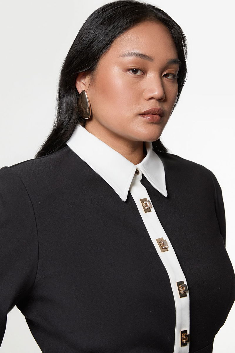 Plus Size Techno Cotton Woven Maxi Dress With Contrast Placket