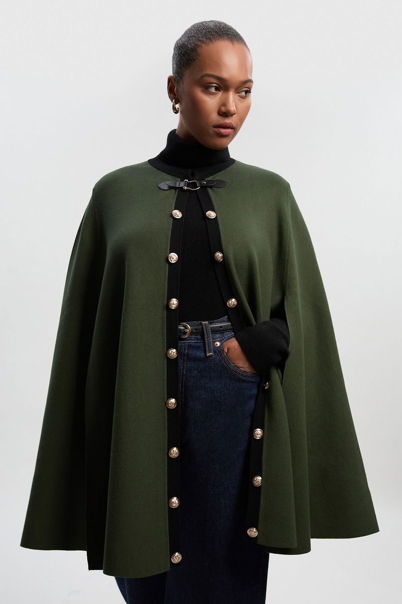 Plus Size Viscose Blend Military Trim Knitted Cape