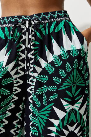 Plus Size Viscose Linen Scenic Placed Print Woven Wide Leg Trousers