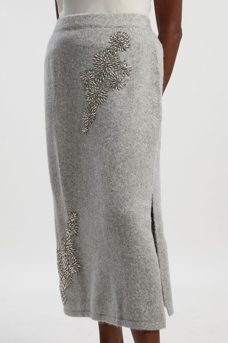 Plus Size Wool Blend Embellished Cosy Pencil Midi Skirt