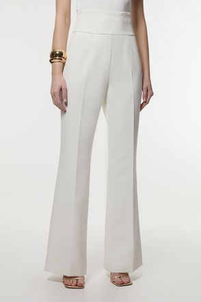 These Karen Millen tailored kick flare trousers present the perfect balance of contemporary style and classic workwear sophistication. The high-rise waistband creates a flattering shape that elongates the legs, while the subtle flare adds a modern twist to traditional office attire. Style them with a fitted button-front vest and coordinating blazer for a powerful suited look, or pair them with a crisp cotton shirt and court shoes for everyday elegance. The versatile design transitions seamlessly from important meetings to after-work gatherings, simply swap your structured tote for a clutch and add statement jewellery.