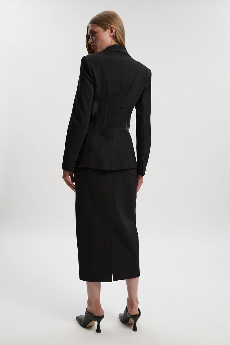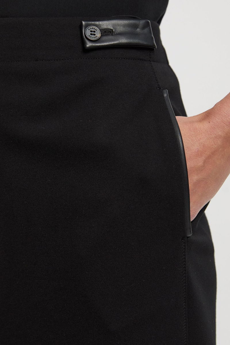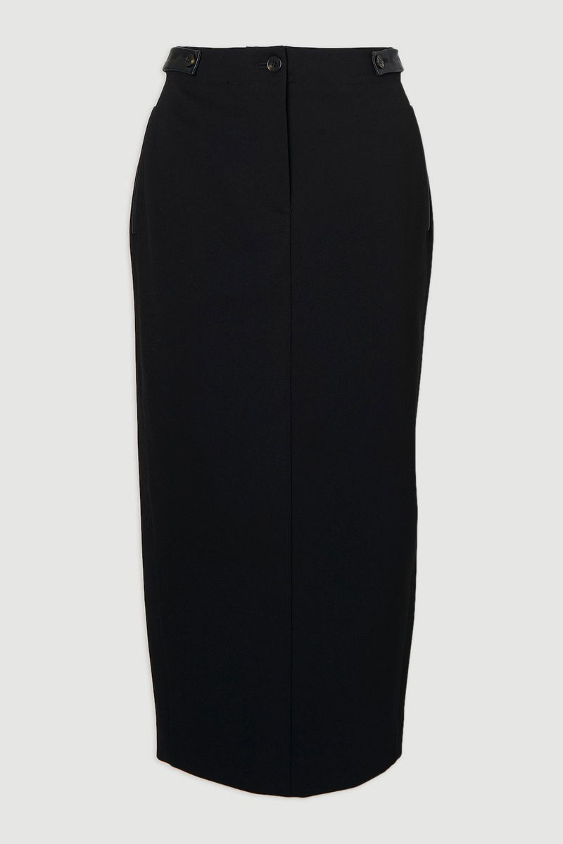 Ponte And Pu Mix Tab Detail Tailored Pencil Midi Skirt