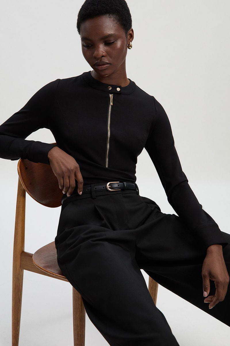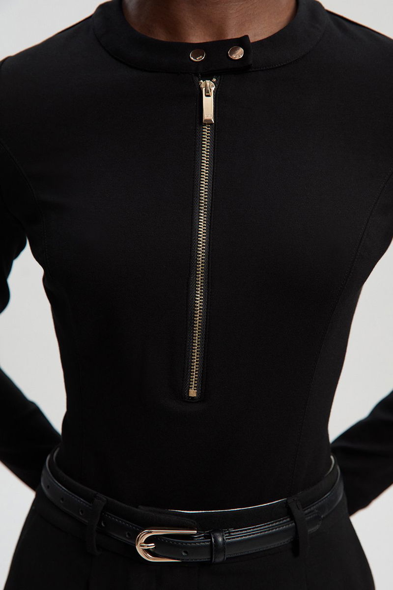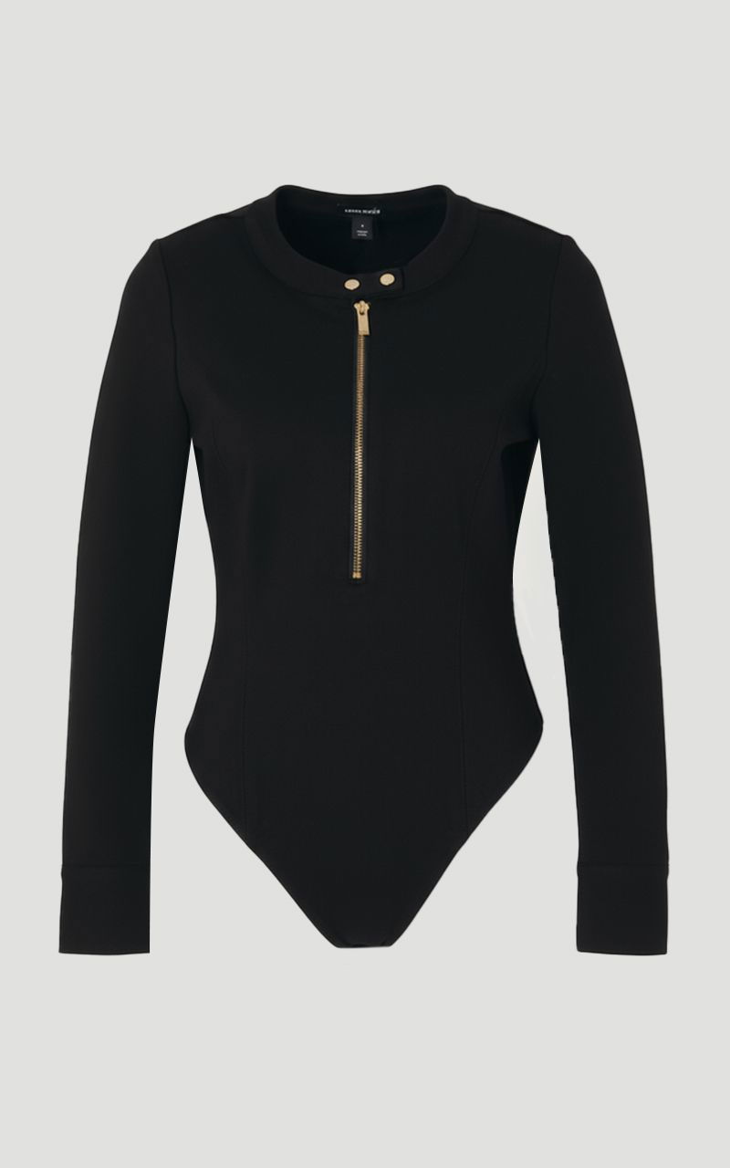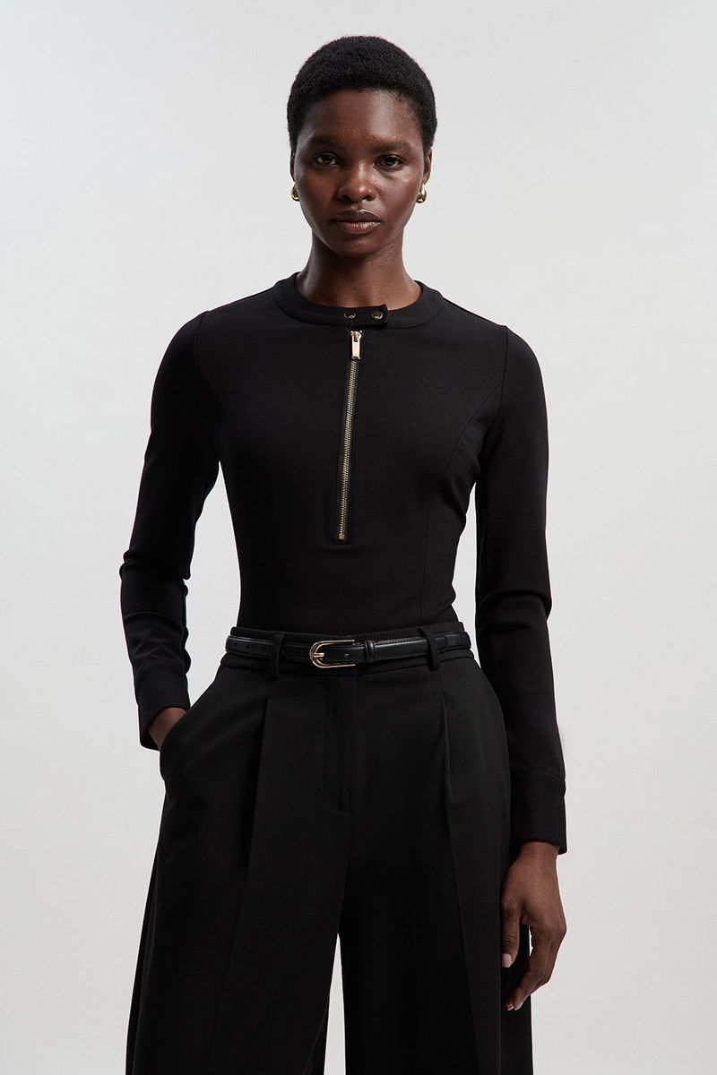 Ponte Zip Trim Detail Long Sleeve Bodysuit