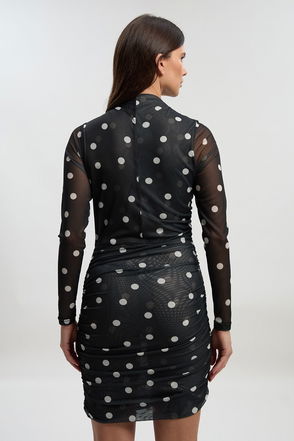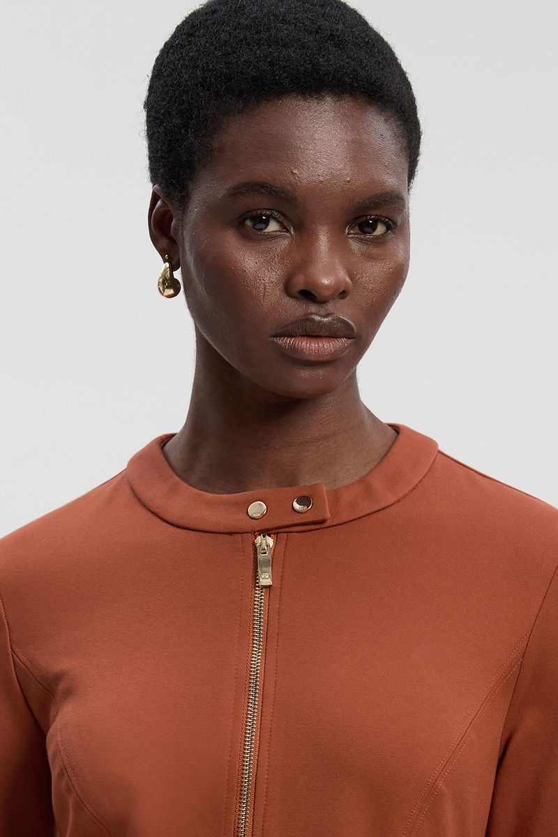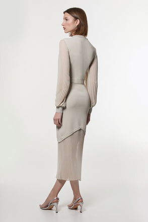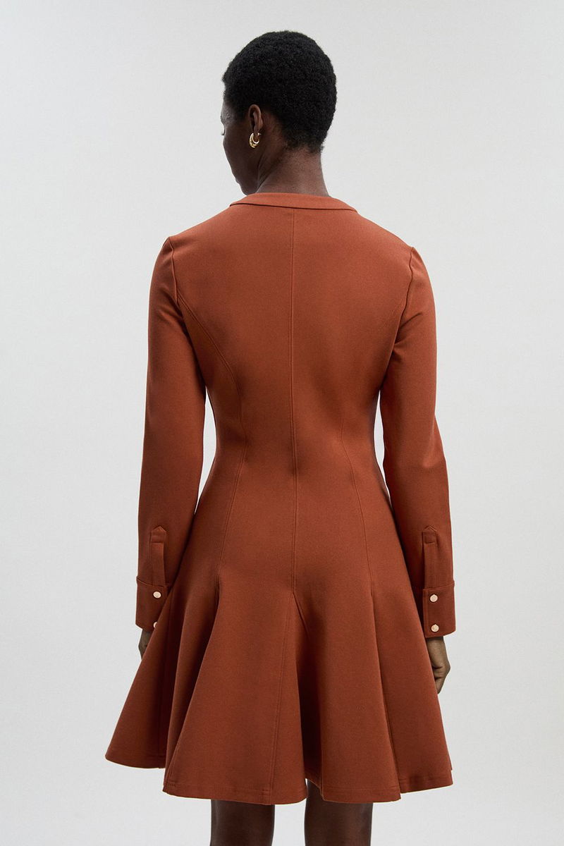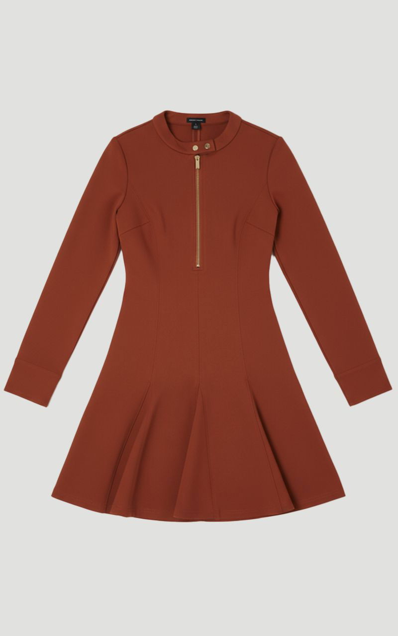 Ponte Zip Trim Detail Pleated Long Sleeve Mini Dress