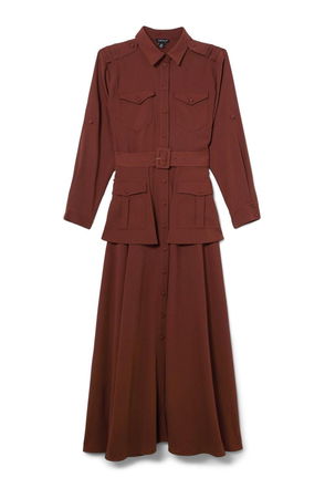 Premium Cotton Tailored Belted Shirt Maxi Dress