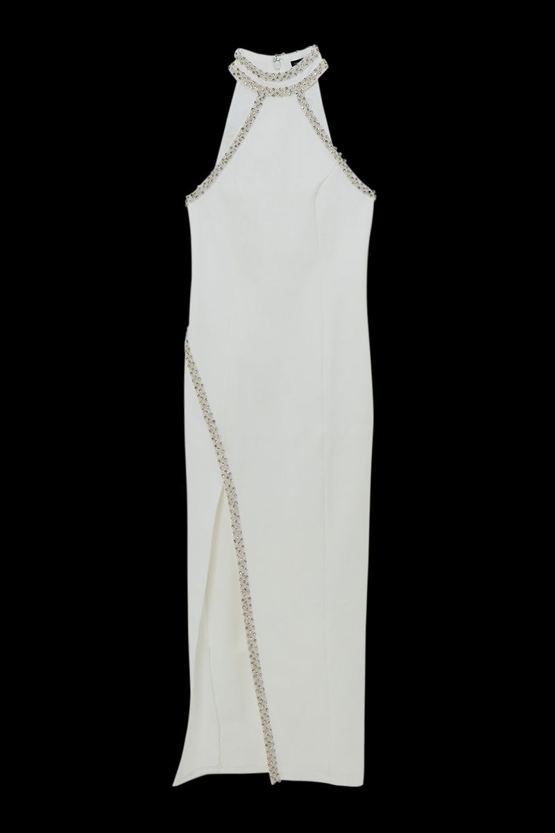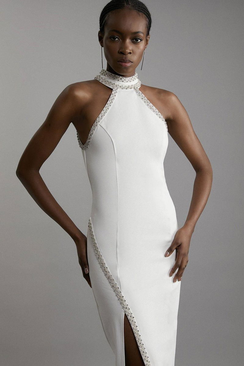 Premium Embellished Ponte Jersey Midi Dress