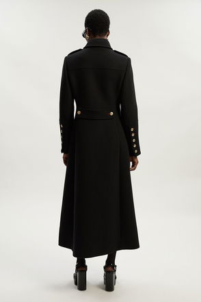 Feel elevated no matter the weather in this longline coat, made in high quality, thick Italian wool, featuring military detailing and metallic buttons.