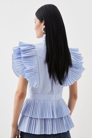 Add a little formality in the blouse. The linen fabric is breathable and comfortable, and the cinched waist seams make for an ultra flattering silhouette. This piece pairs well with anything, from the matching separates, to tailored trousers, to jeans for an elevated daytime look.