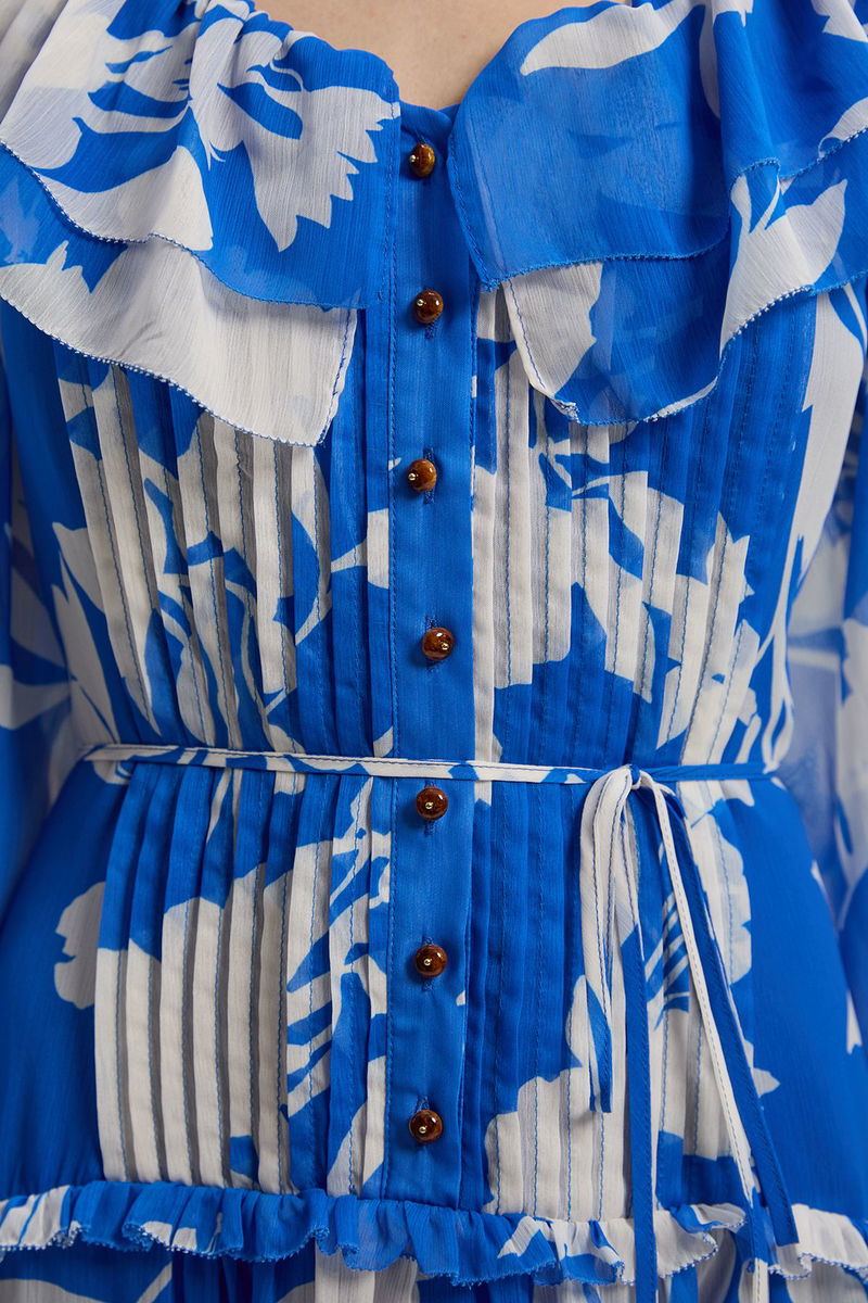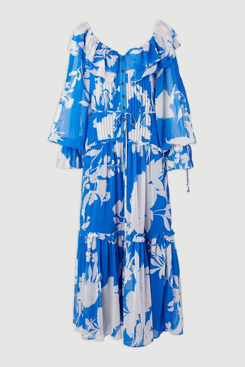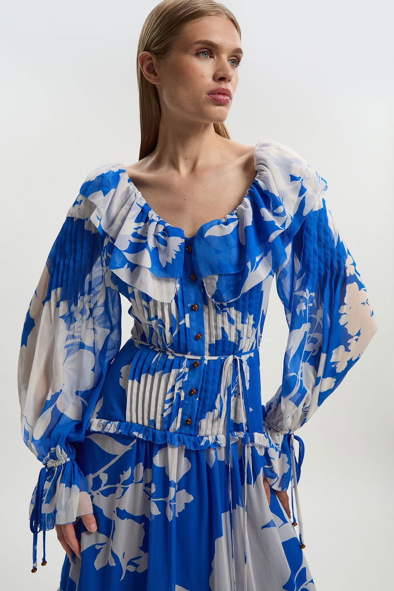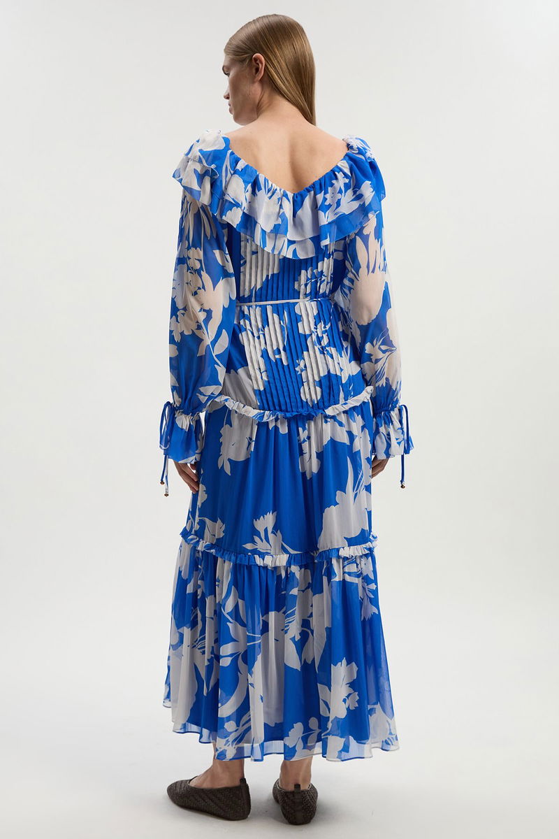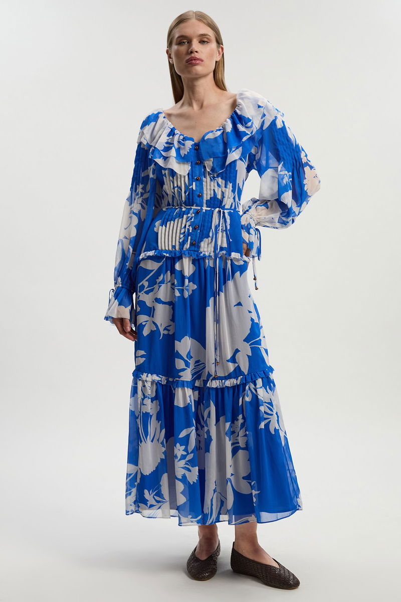 Printed Georgette Ruffle Woven Maxi Dress