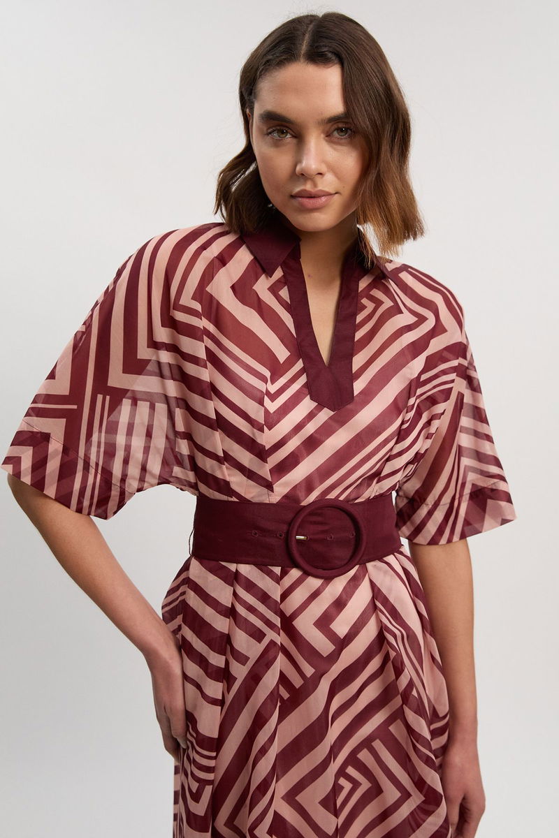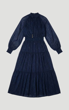 Printed Organdie Plunge Collared Maxi Dress