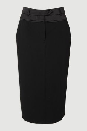 For those days where you need to an impression. Perfect from boardroom to bar, this faux-leather skirt features a figure-hugging pencil silhouette, high waist, seaming detail, back zip and comes in a midi length.