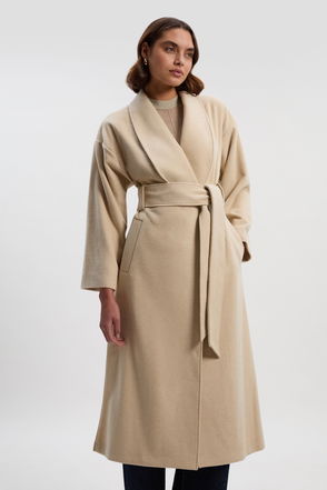 This wool coat looks just as good as anything underneath. Accented by a chunky metal d-ring belt (that’ll effortlessly cinch you in), the piece is lightly structured for an ultra-flattering silhouette. Detailed with a notched double lapel, the top stitching also adds a luxurious touch.