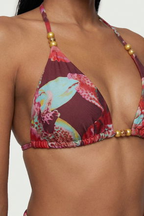 Welcome the sun with a bikini that will turn heads, the top of which features a three dimensional corsage accent at the cleavage, and a comfortable bandeau style, with optional, wide shoulder straps. Style this piece with the matching bikini bottoms, strappy sandals, and a beach cover up for a holiday look that can be reworn time and time again.
