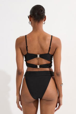 Impress around the pool with this bandeau bikini top that elegantly frames the shoulders while a rosette detail adds feminine flair. Pair with the matching bikini bottoms for luxury swimwear.