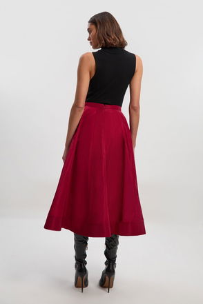 Feel confident in our midi skirt, with high quality denim fabric, as well as a full silhouette, and a casual, belted style. Style it with a T-shirt or long sleeve blouse and heels for a look that goes from office days to post work dinner and drinks, as well as day to night weekend plans.