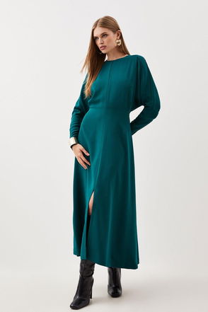 Scallop Trim Panelled Crepe Maxi Dress