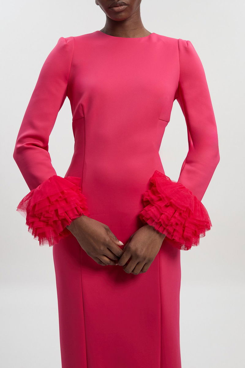Scuba Drama Tulle Detail Cuff Woven Midi Dress