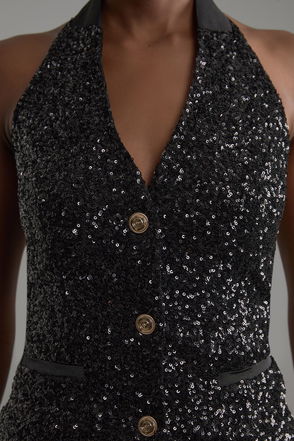 Tailoring like you’ve never seen it before – this waistcoat is a smart choice for after-hours styling. Embellished with shimmery sequins and fastened with our signature KM-branded buttons, it’s a special addition to your occasionwear wardrobe.