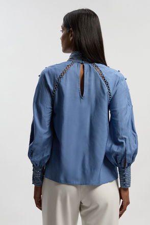 Silk Cotton Short Sleeve Pintuck Woven Blouse.