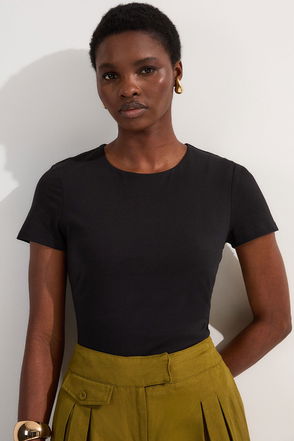 Clinging to curves in all the right places, this luxe lace top blends of-the-moment modernity with wear-forever appeal. Ribbed knit accents detail the sleeves and neckline for a texturised twist whilst its form-fitting silhouette will streamline any look with ease.