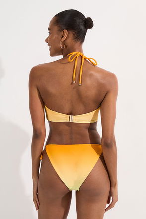 Vibrant poolside glamour comes guaranteed with these cheeky cut bikini bottom, detailed with a stand-out golden embellishment.