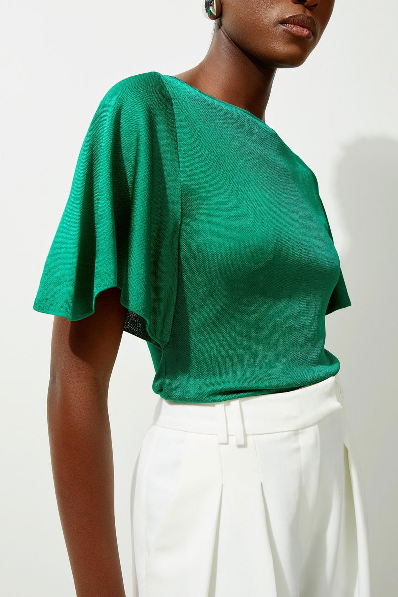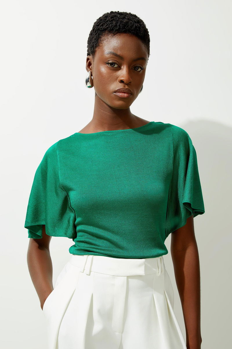 Slinky Viscose Flutter Sleeve Knit Top