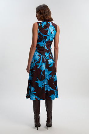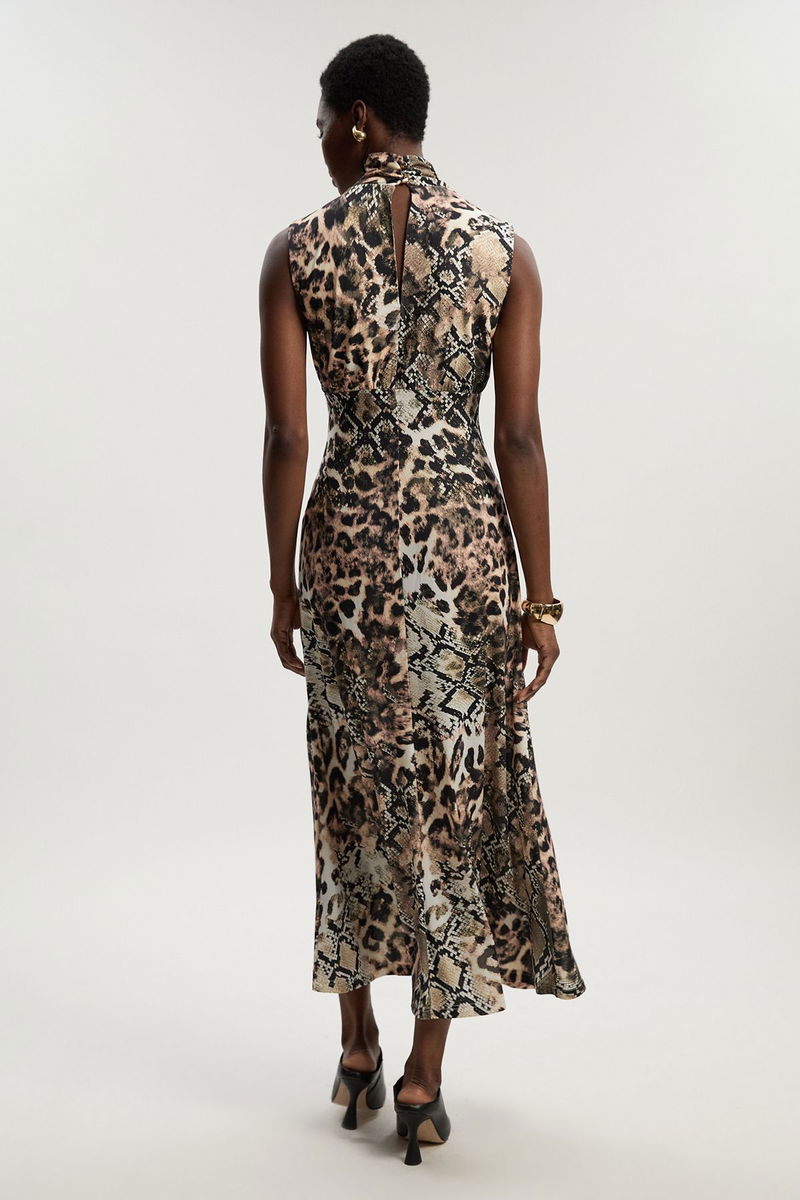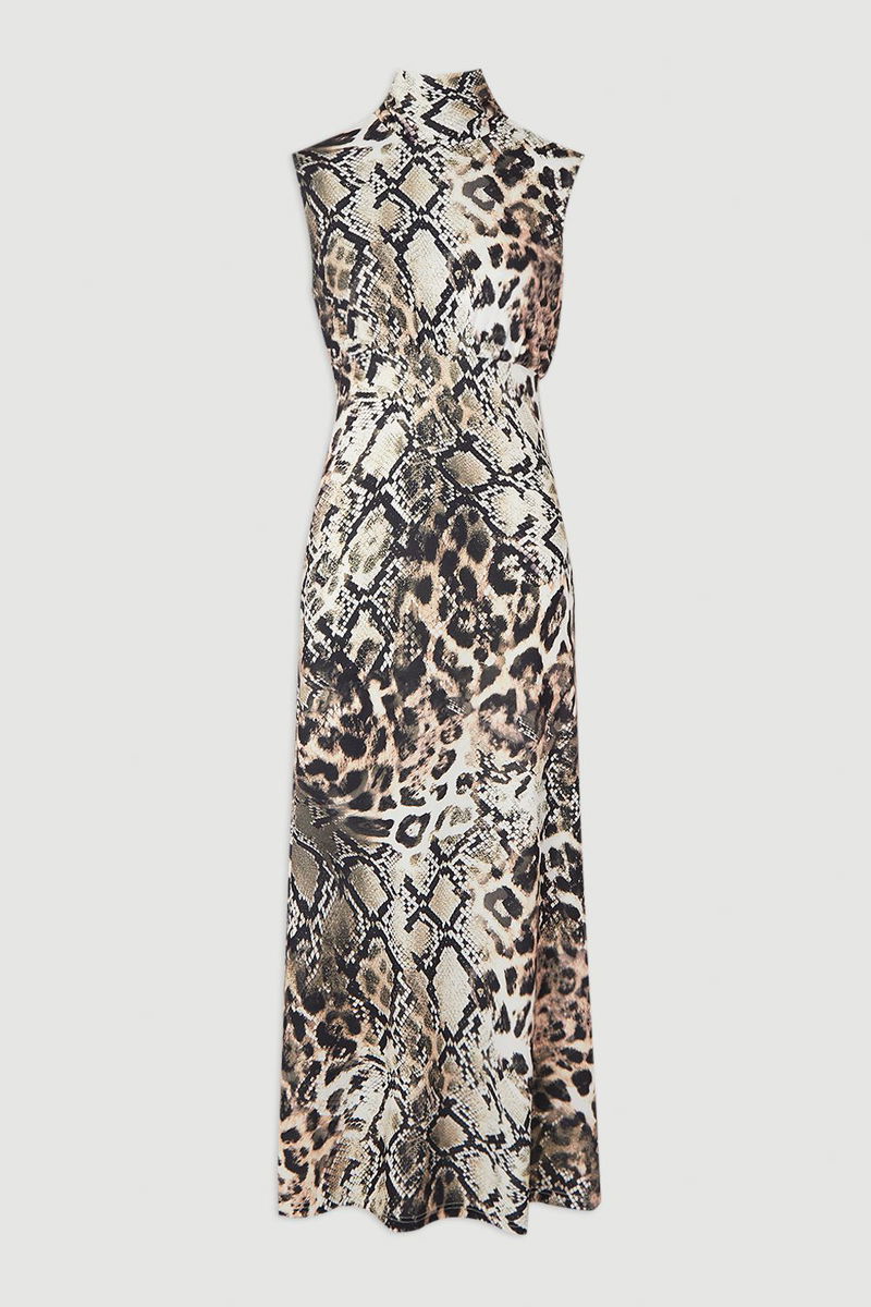 Snake Print High Neck Jersey Crepe Maxi Dress