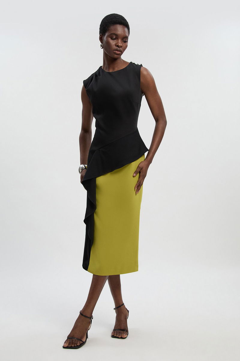 Soft Tailored Asymmetric Neck Draped Waist Detail Midi Dress