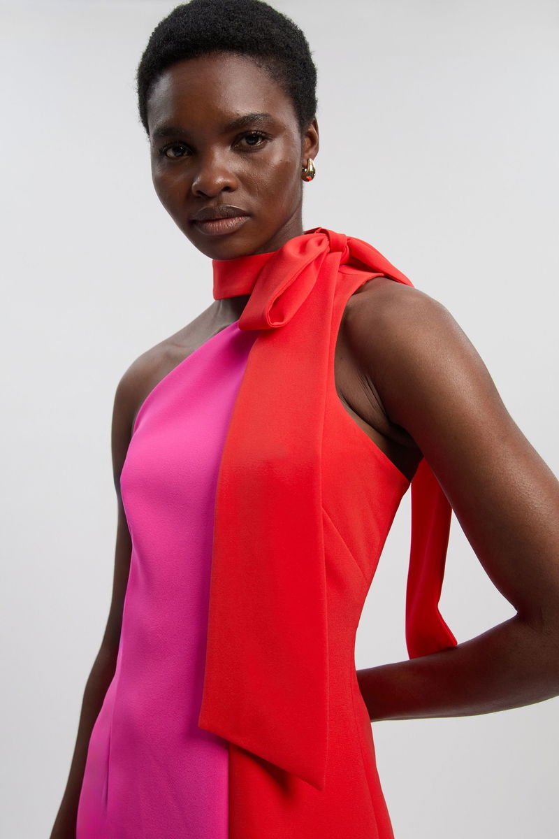 Soft Tailored Colour Block Bow Midi Dress