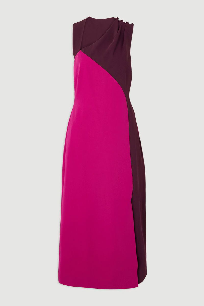 Soft Tailored Colour Block Halter Neck Midi Dress