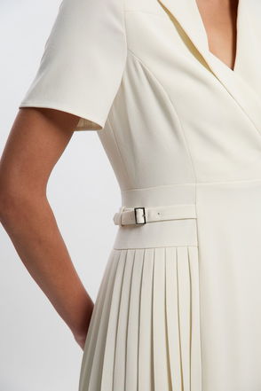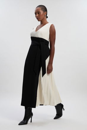 Soft Tailored Colour Block High Neck Pleated Midi Dress