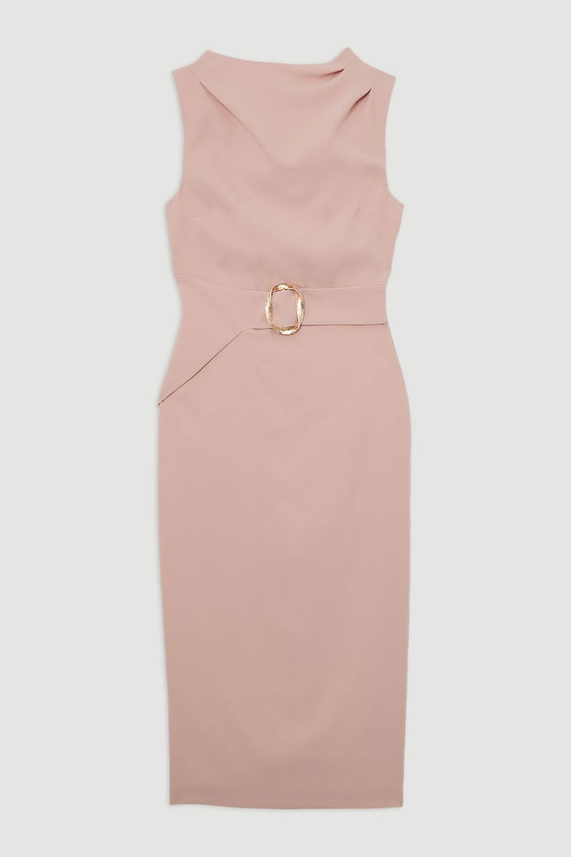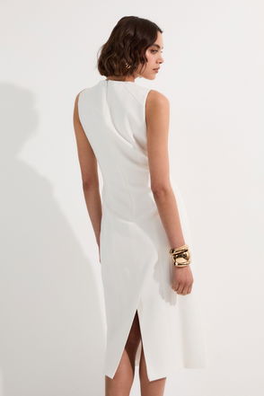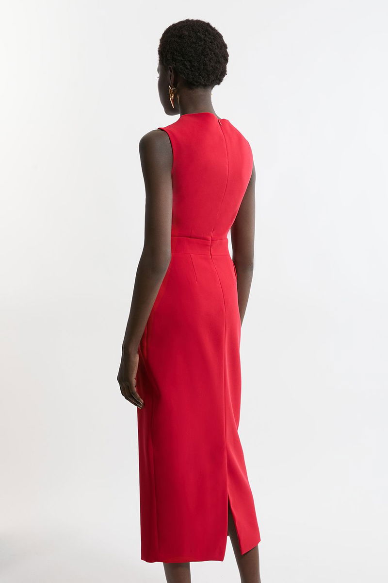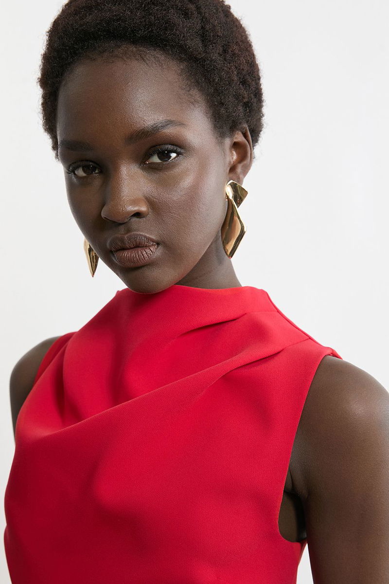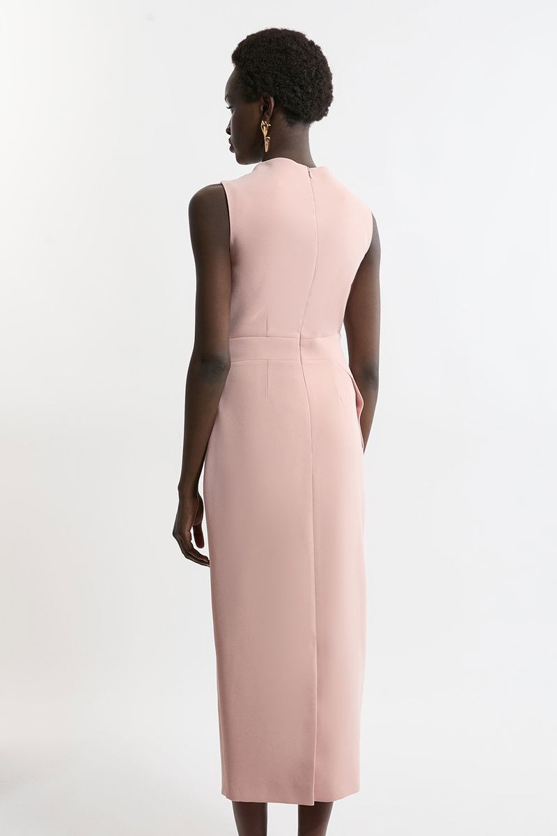 Soft Tailored Drape Detail Sleeveless Tailored Midi Dress