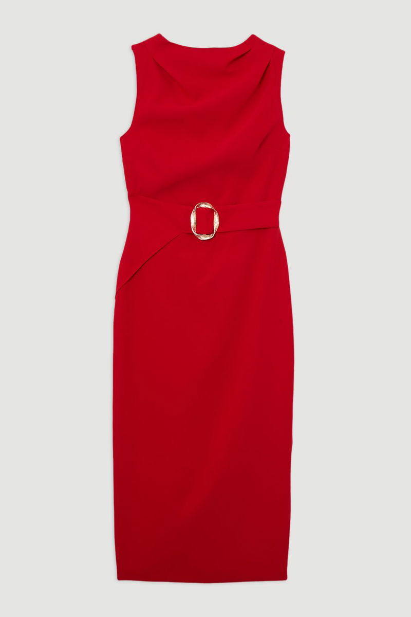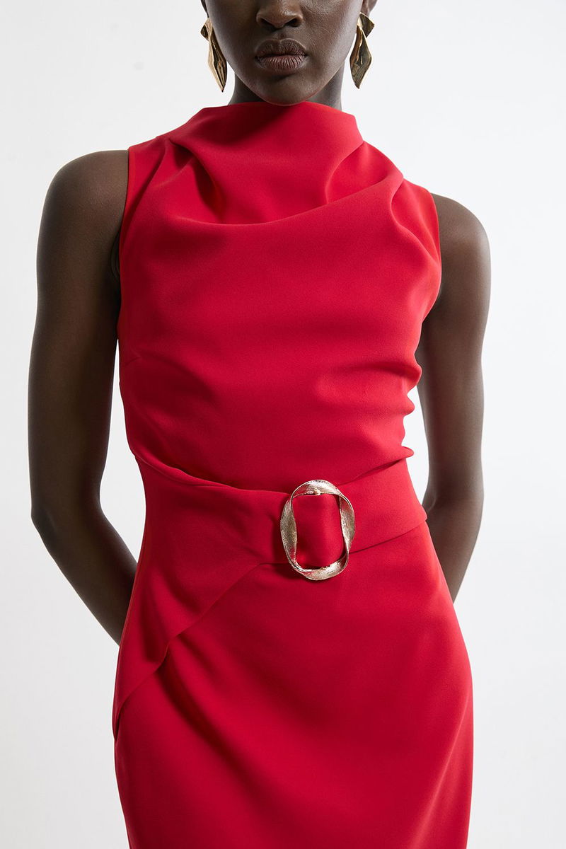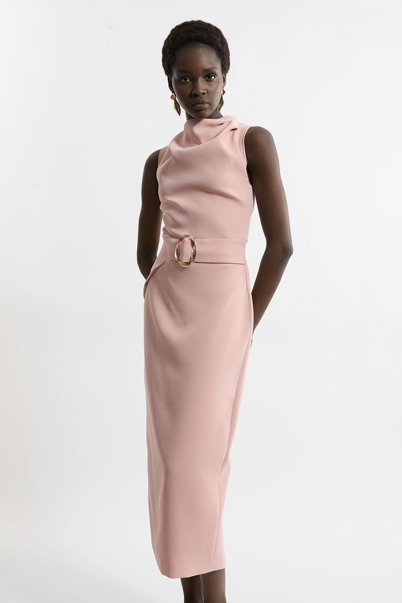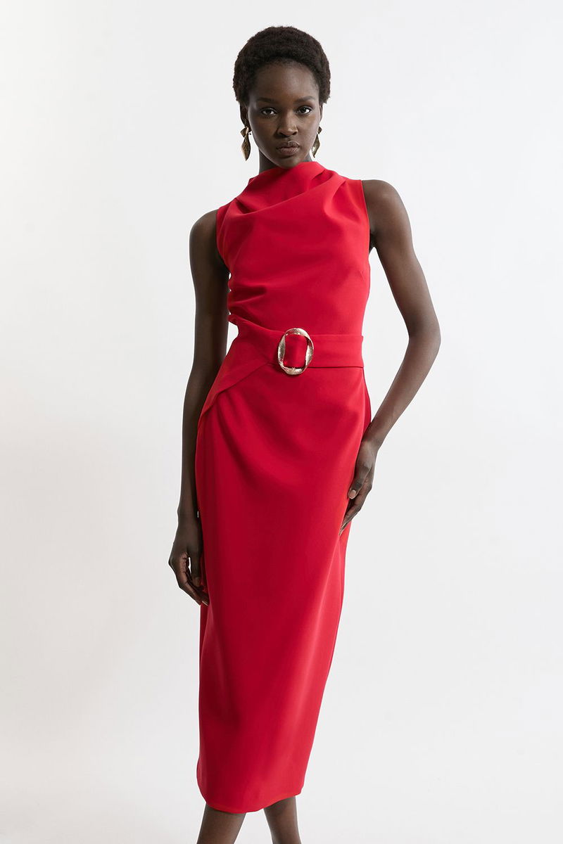 Soft Tailored Drape Detail Sleeveless Tailored Midi Dress